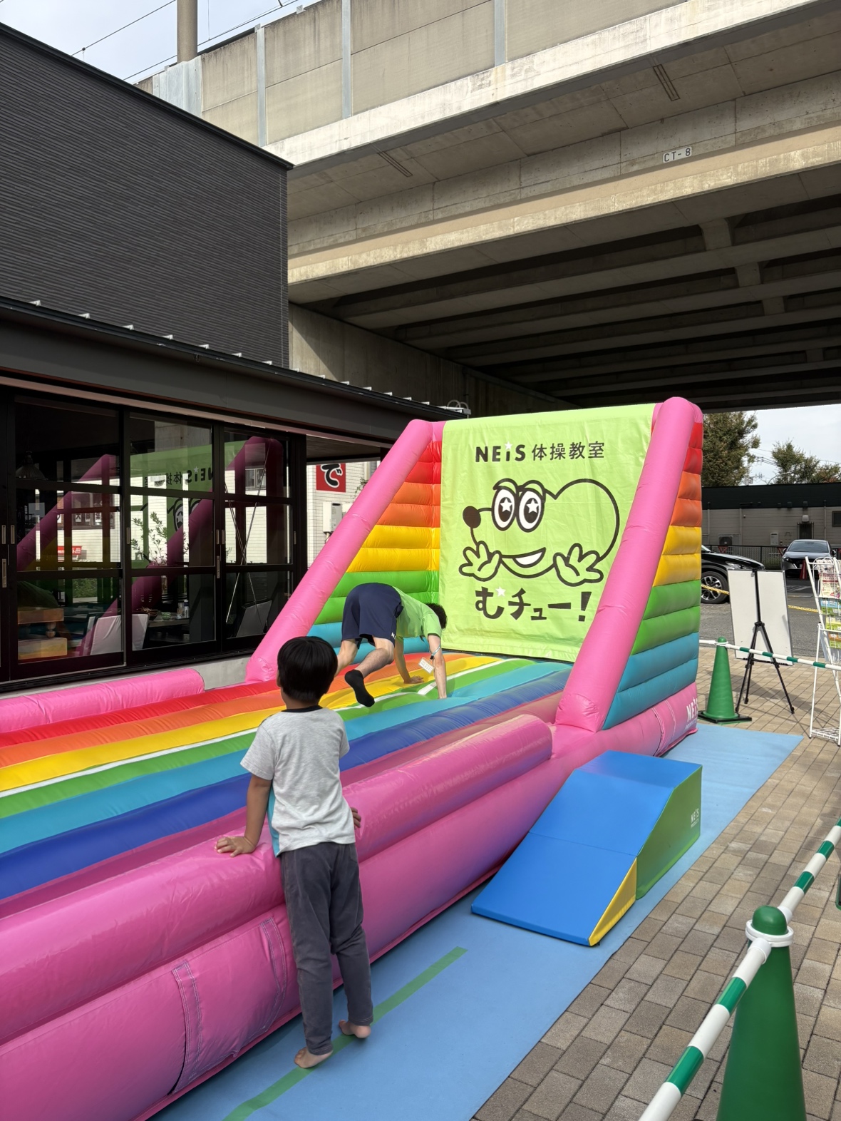 教室で使用しているエアートランポリンを外に出してミニレッスンをしました!